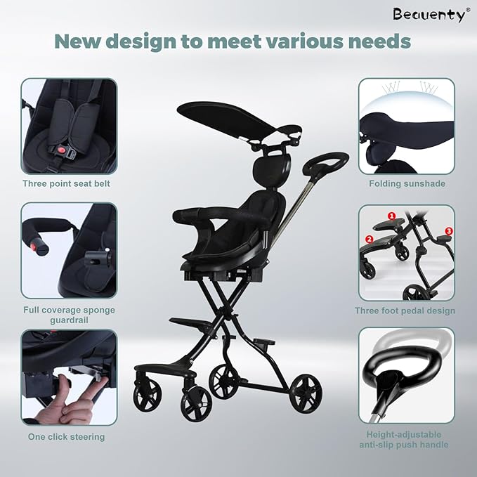 - مقعد مبطن متعدد الوضعيات (من الجلوس للنوم) علشان يدي طفلك راحة في كل الأوقات.
